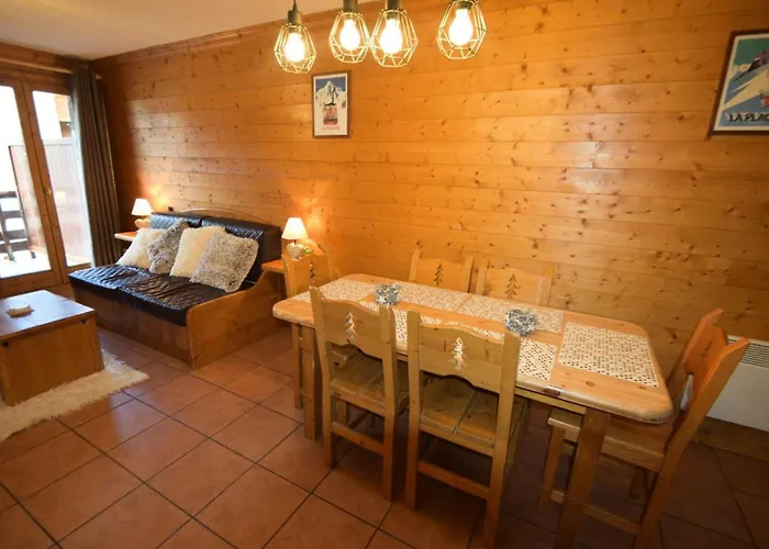The 45 m^2 Résidence Lodges Des Alpages - 3 Pièces 6 pers - LES LODGES DES ALPAGES - PLAGNE SOLEIL MAE-4284 La Plagne is located a mere 1.8 km from La Plagne Ski Resort and 10 minutes by car from Inversens Ski Lift. This apartment also offers private parking on site.